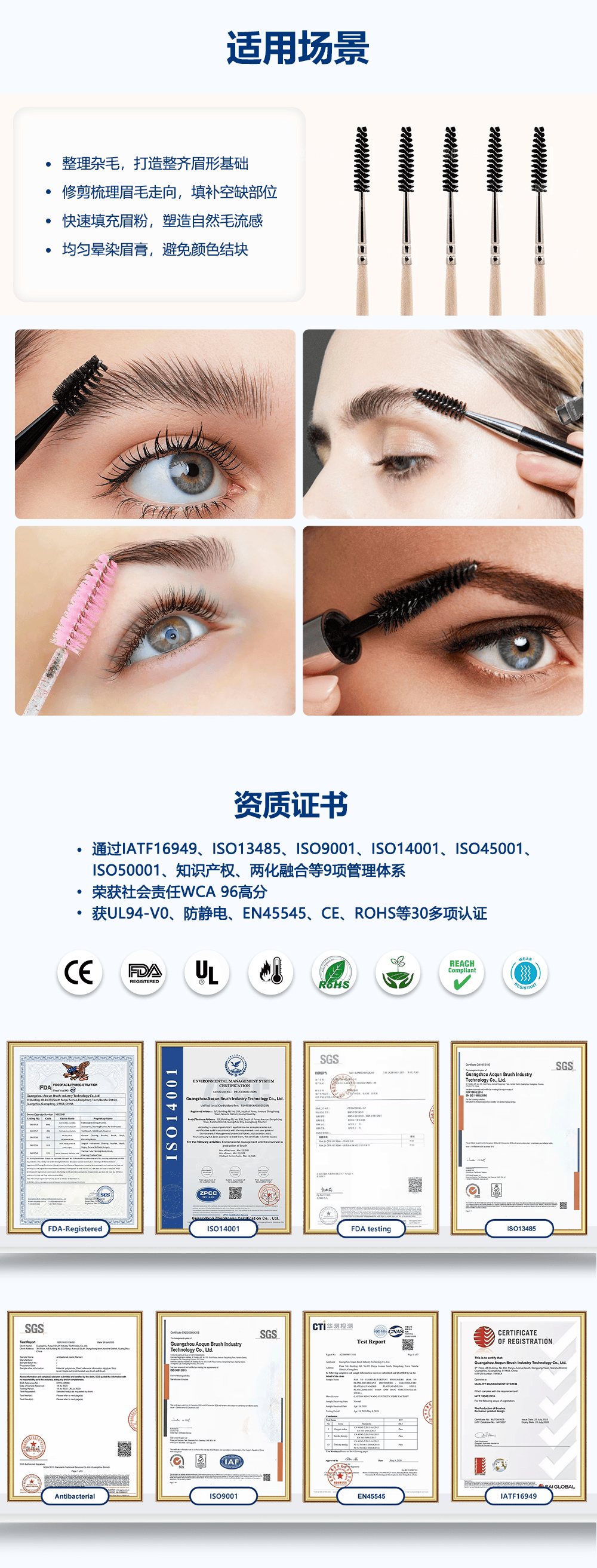 • 應(yīng)用范圍:整理雜毛,打造整齊眉形基礎(chǔ)。修剪梳理眉毛走向,填補(bǔ)空缺部位快速填充眉粉,塑造自然毛流感。均勻星染眉膏