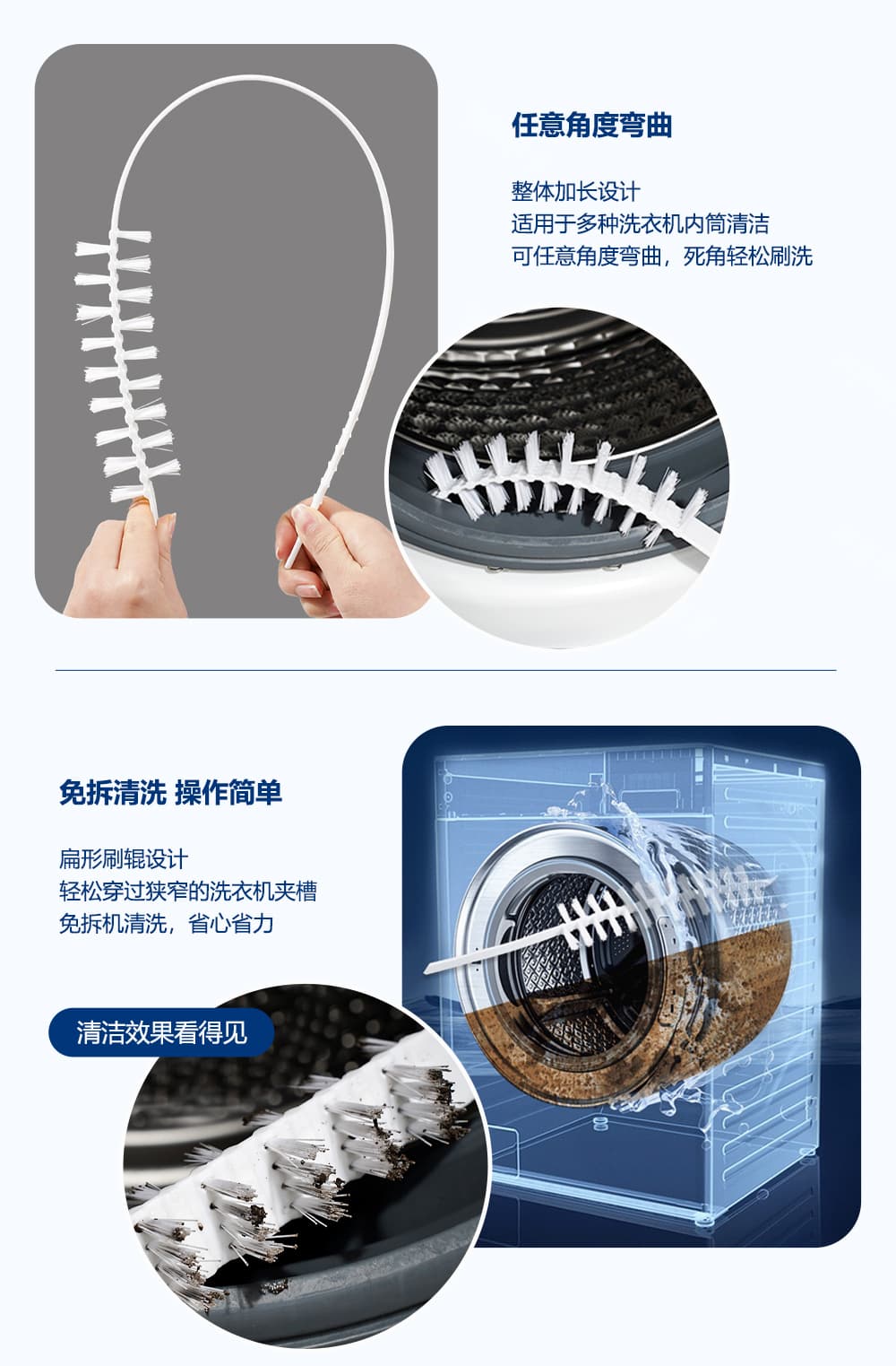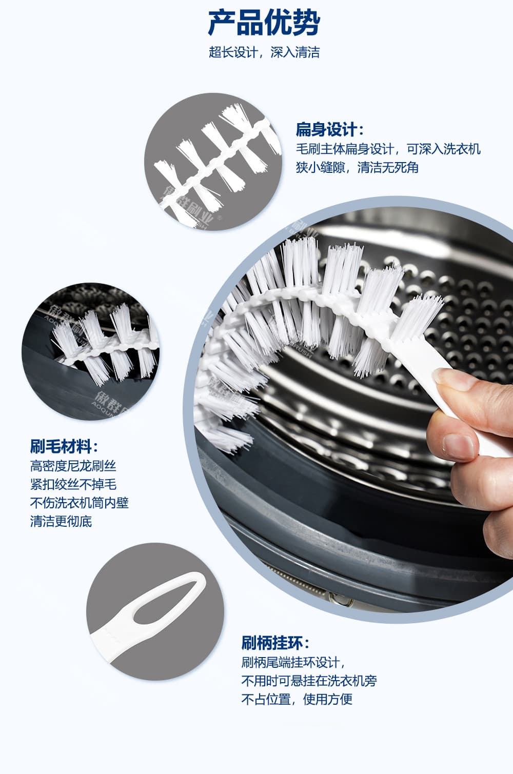 - 刷毛材質(zhì):高密度尼龍刷絲緊扣絞絲不掉毛不傷洗衣機筒內(nèi)壁清潔更徹底