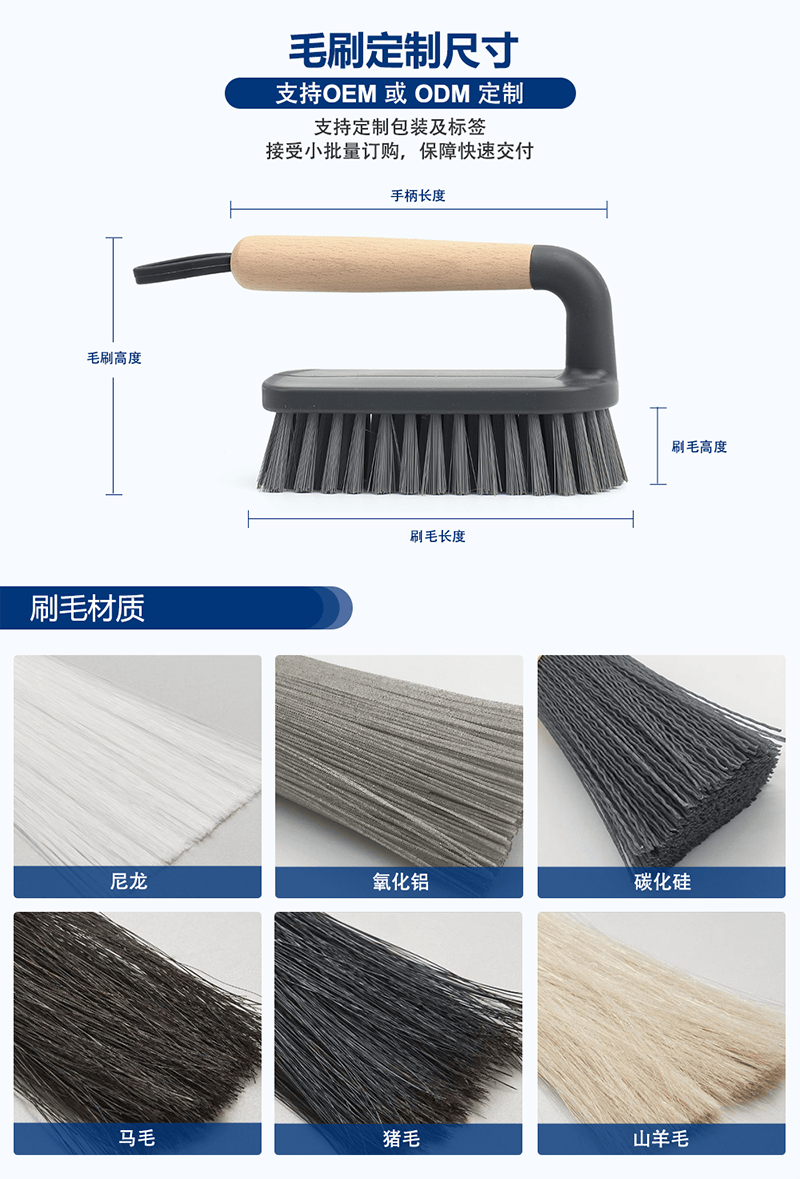 - 刷毛材質(zhì):刷毛材質(zhì)豐富,有尼龍、氧化鋁、碳化硅、馬毛、豬毛、山羊毛等可選。